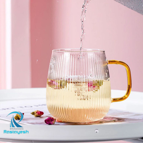 لیوان پیرکس راه راه دسته طلایی کد 22ناموجود