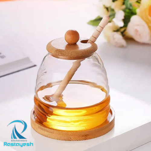ظرف عسل پیرکس درب بامبو کد001ناموجود