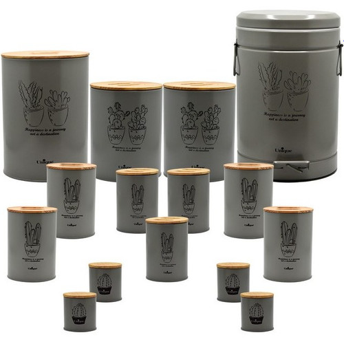 سرویس جهیزیه 15 پارچه فانتزی طوسی کاکتوس درب بامبو یونیک کد 8049ناموجود