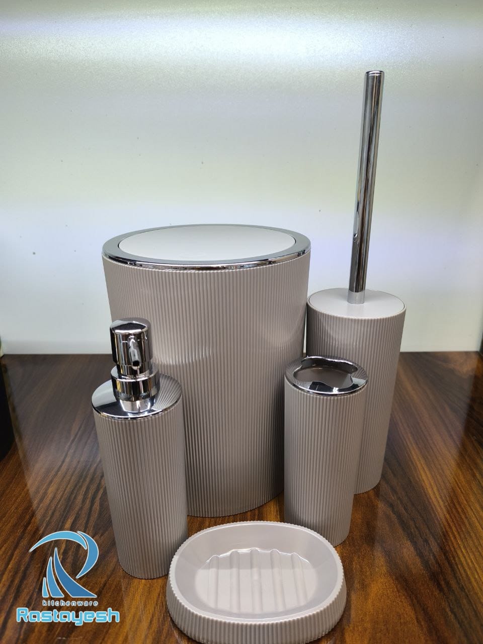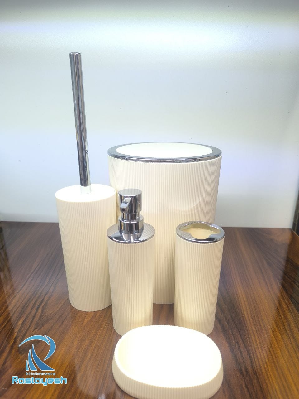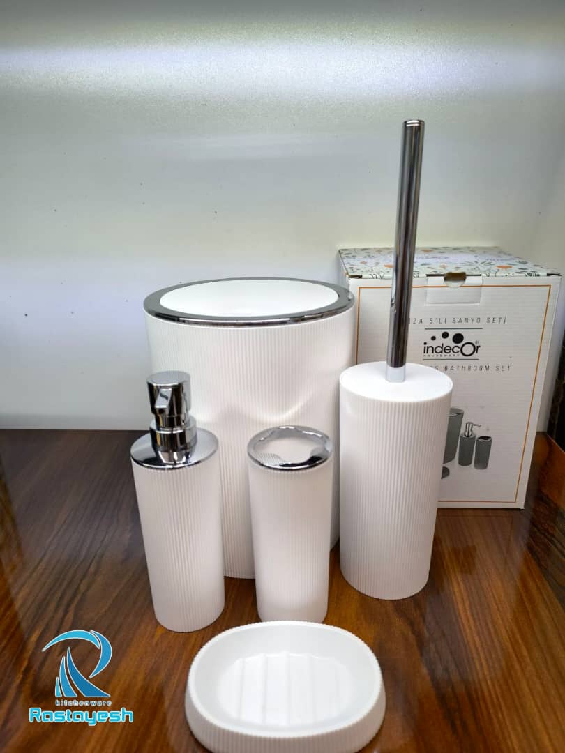 ساخت ترکیه شامل 5پارچه: ظرف مایع دستشویی جاصابونی جامسواکی فرچه(برس)توالت سطل آشغال این محصول از آکریلیک مقاوم در برابر شکستگی ساخته شده و طراحی لوکسی دارد.