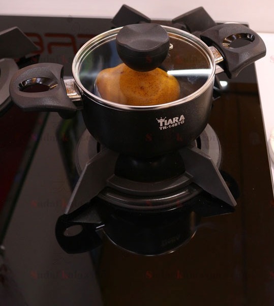 قابلمه سایز 14 گرانیت دو رو تیارا، جنس بدنه از آلومینیوم با پوشش نچسب گرانیت، دسته و قپه پلاستیک نسوز (باکالیت)، درب شیشه ای با حاشیه استیل نگیر است. مناسب پخت انواع غذا می باشد.