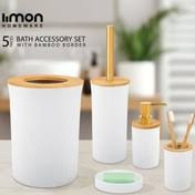 شامل یک عدد سطل زباله ، یک عدد جا صابونی ، یک عدد جا مسواکی ، یک عدد فرچه و یک عدد جا مایع