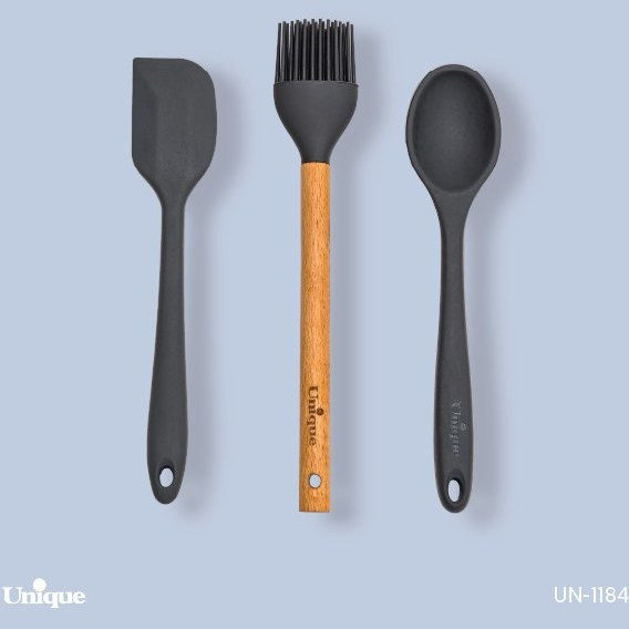 فرچه، قاشق و لیسک کوچک سیلیکون یونیک مدل UN1184 جز ابزار های مناسب و کاربردی در شیرینی و آشپزی است. این مدل دارای لیسک سیلیکونی که برای مسطح کردن و پهن کردن خمیر و مواد غذایی مناسب می باشد. فرچه سیلیکونی دسته چوبی برای مالیدن تخم مرغ، روغن، زعفران و... استفاده می شود. قاشق سیلیکونی هم که در آشپزی کاربرد دارد.