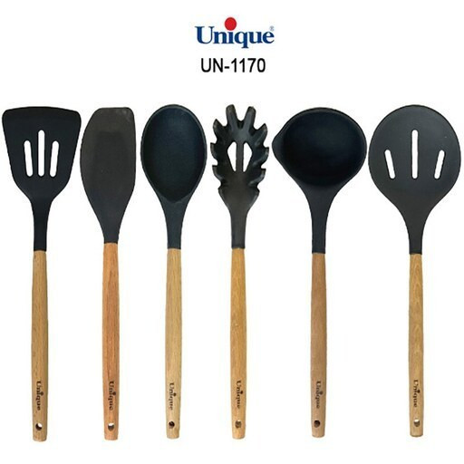 کفگیر و ملاقه سیلیکونی یونیک مدل 1170 دارای دسته های چوبی زیبا و با کیفیت است. این ابزار آشپزی علاوه بر ظاهر زیبایی که دارند بسیار پر کاربرد هستند. کفگیر و ملاقه UN-1170 یونیک از جنس سیلیکون با کیفیت و دسته های چوبی مرغوب می باشد.